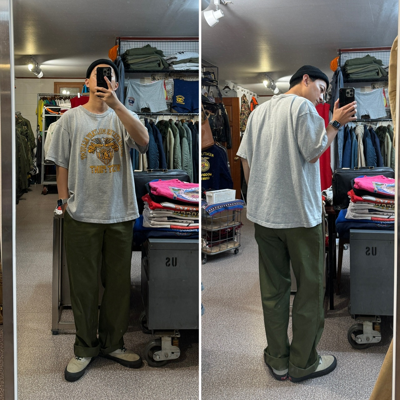 허리 41 밑위 30 허벅지 35.5 밑단 23.8 총장 114(미수선) cm