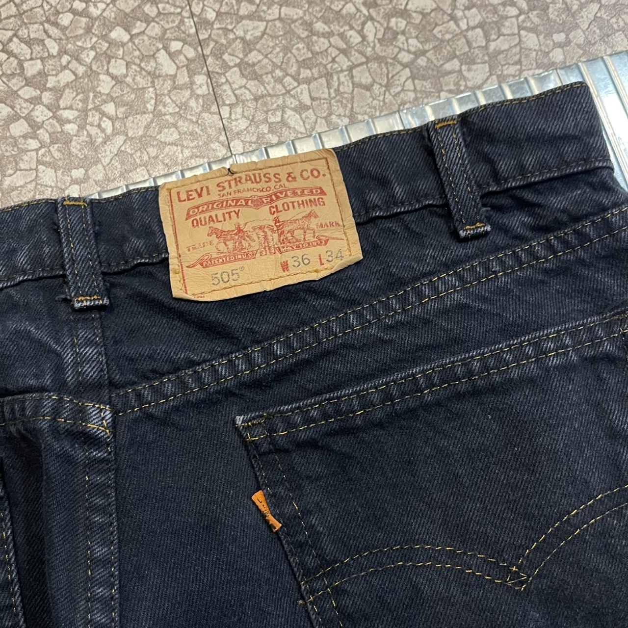 90's Levis 505 Orange Tab Black Denim Pants, Made In USA (35-36)